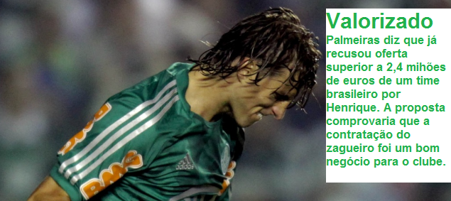 A contratação de Henrique pelo Palmeiras virou alvo de investigação do COF (Conselho de Orientação e Fiscalização) do alviverde. O órgão estranha o fato de duas empresas embolsarem juntas 2,4 milhões de euros do clube. Ao mesmo tempo, não há registro de pagamento ao Barcelona, com quem o atleta tinha vínculo.